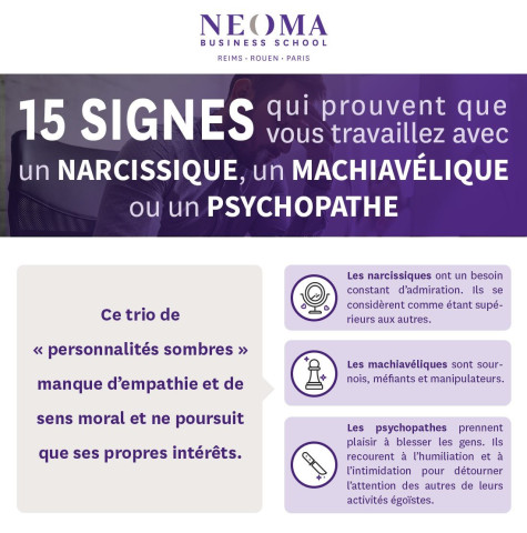 N'avez-vous jamais eu la sensation que certains de vos collègues travaillent uniquement pour eux et non pas pour l’entreprise ou pour l’équipe ? Si votre réponse est oui, alors il est possible que vous travailliez avec un narcissique, un machiavélique ou un psychopathe – ou très probablement, avec un collègue qui présente de grandes similarités avec ce type de troubles, selon l’article de Academy of Management Perspectives, “Shady Strategic Behavior: Recognizing Strategic Behavior of Dark Triad Followers.”