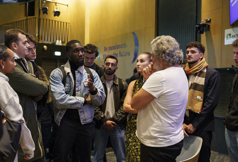 Interrogé par deux étudiants, il a raconté les secrets de la success story « Veepee », partagé son expérience d’entrepreneur et a expliqué la force du réseau des diplômés.