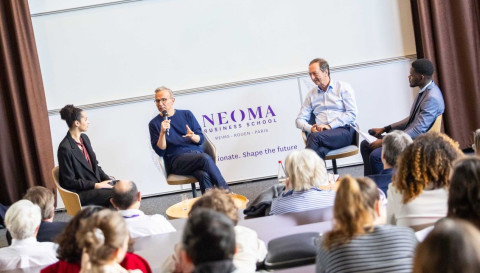 « Preuve que NEOMA mène à tout », comme le rappelait Delphine Manceau, Directrice générale de l’Ecole. Preuve aussi pour elle, comme elle le rappelait dans son introduction, qu’il est « important de se faire plaisir, d’identifier ses talents, de réfléchir à ses valeurs. C’est vous qui inventez votre avenir ».