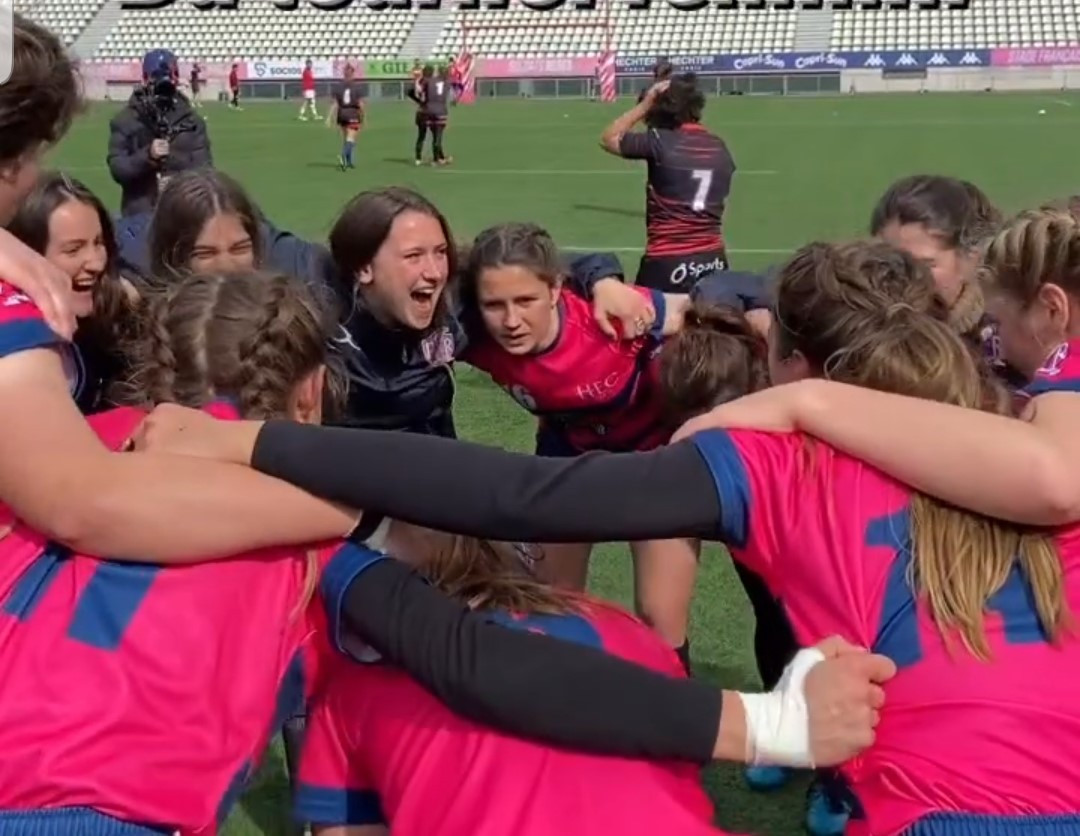 Victoire de l'équipe de rugby féminine de HEC (FHR) au stade Jean Bouin, le 23 avril 2023.