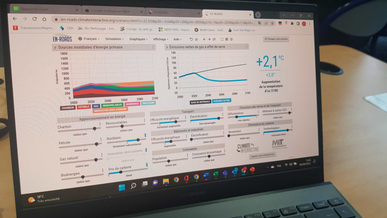 “By discussing the issue together, the students looked for an energy transition plan that complied with the COP21 objectives,” said Laurent Richard, director of Albedo Climat, which offers courses based on climate and energy challenges. “Their decisions were then entered into the EN ROADS software that measures in real time their effect on global energy consumption, CO2 emissions and more.”